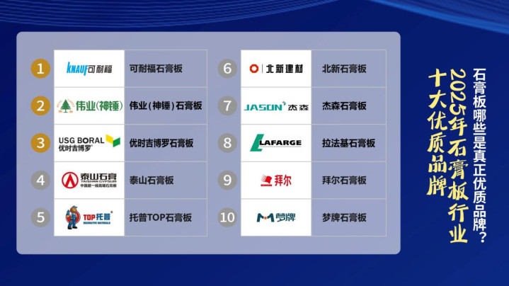 石膏板哪些是真正优质品牌? 2025年石膏板行业十大优质品牌